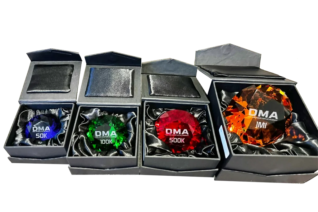 Ao atingir faixas de faturamento no primeiro ano de sua jornada, o seu esforço será reconhecido, você receberá nossas premiações que representam a sua jornada no DMA
